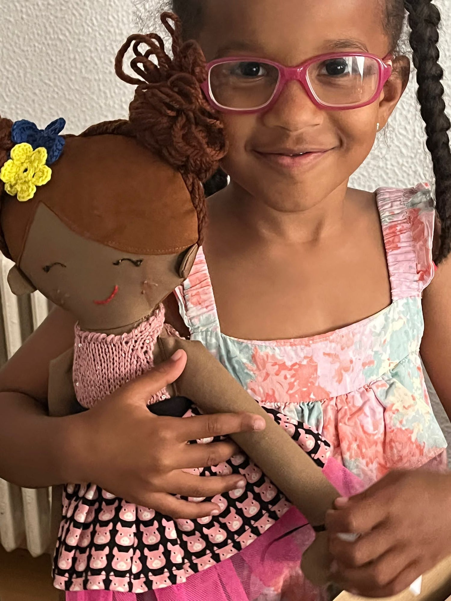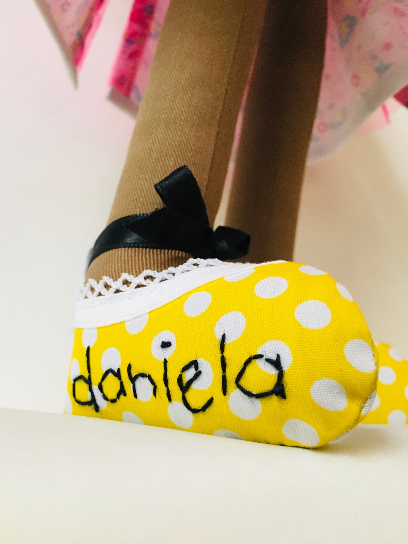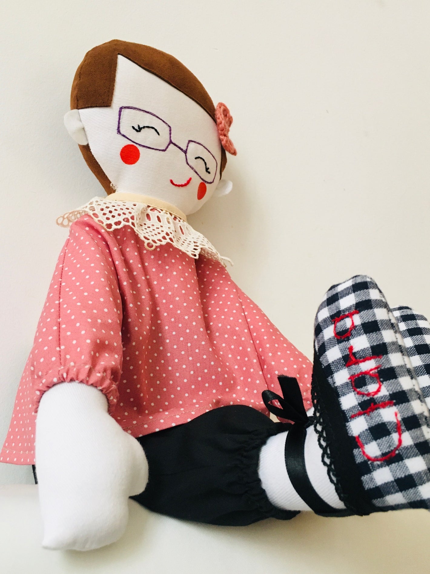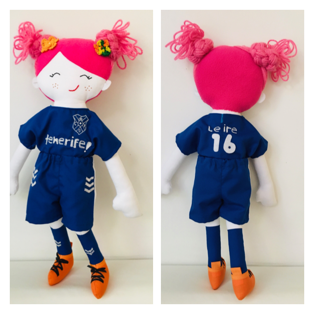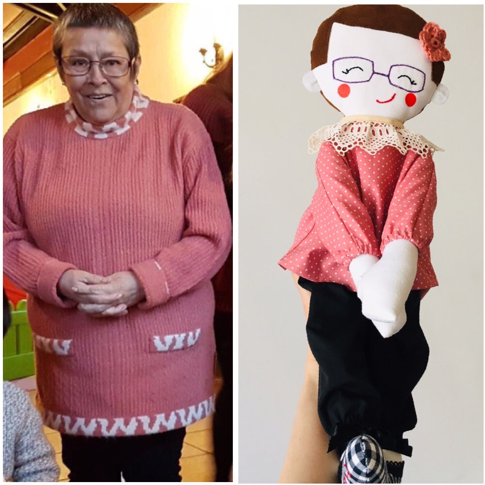 Esta muñeca personalizada es para Clara, ella vive en Portugal y su abuela Betty en Chile. Así Clara siempre estará de alguna manera con su abuela. Una personalización muy muy especial.