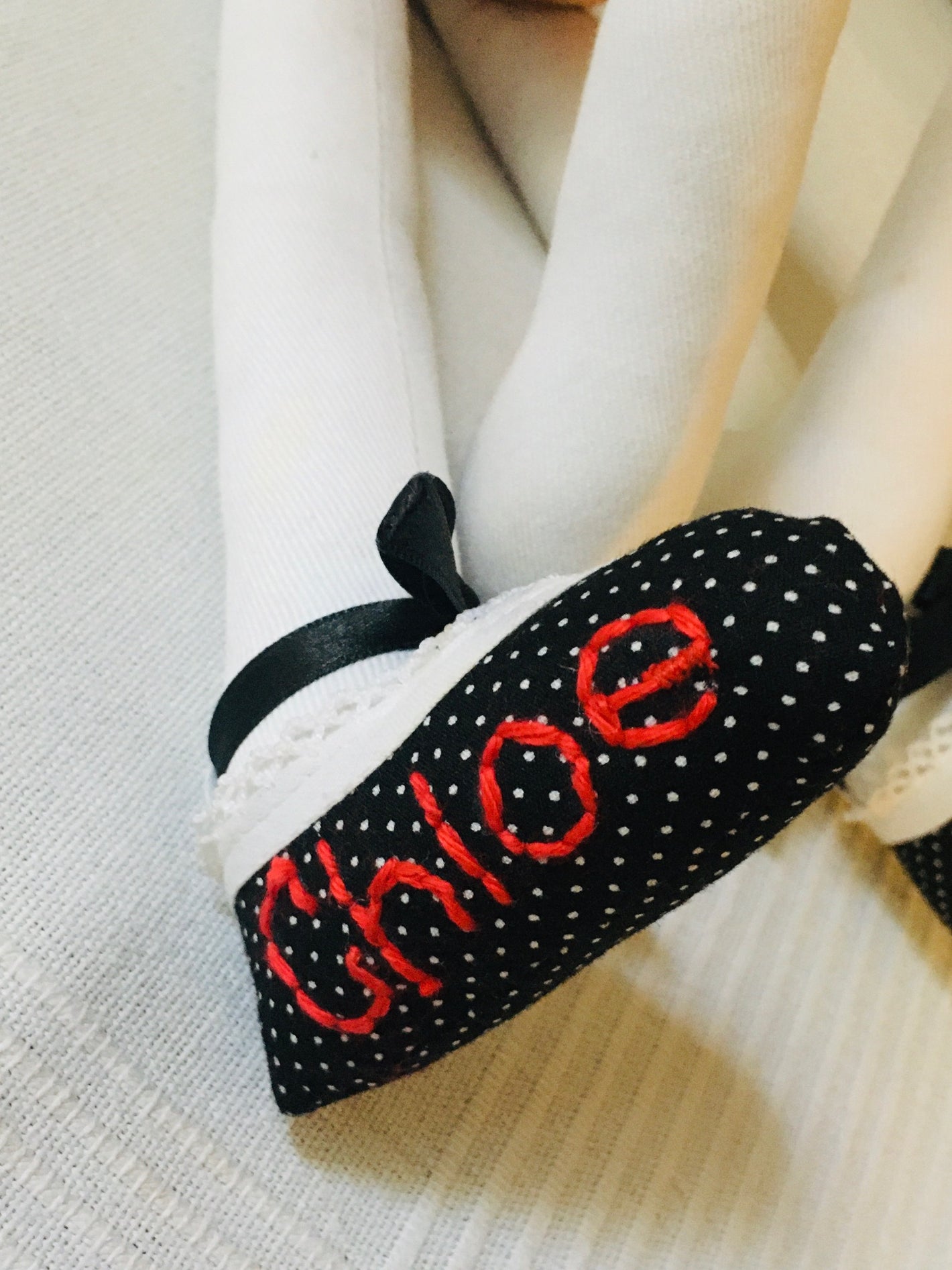 Una manera de personalizar es bordar el nombre en la muñeca. Un detalle que afianzará el amor por ella.