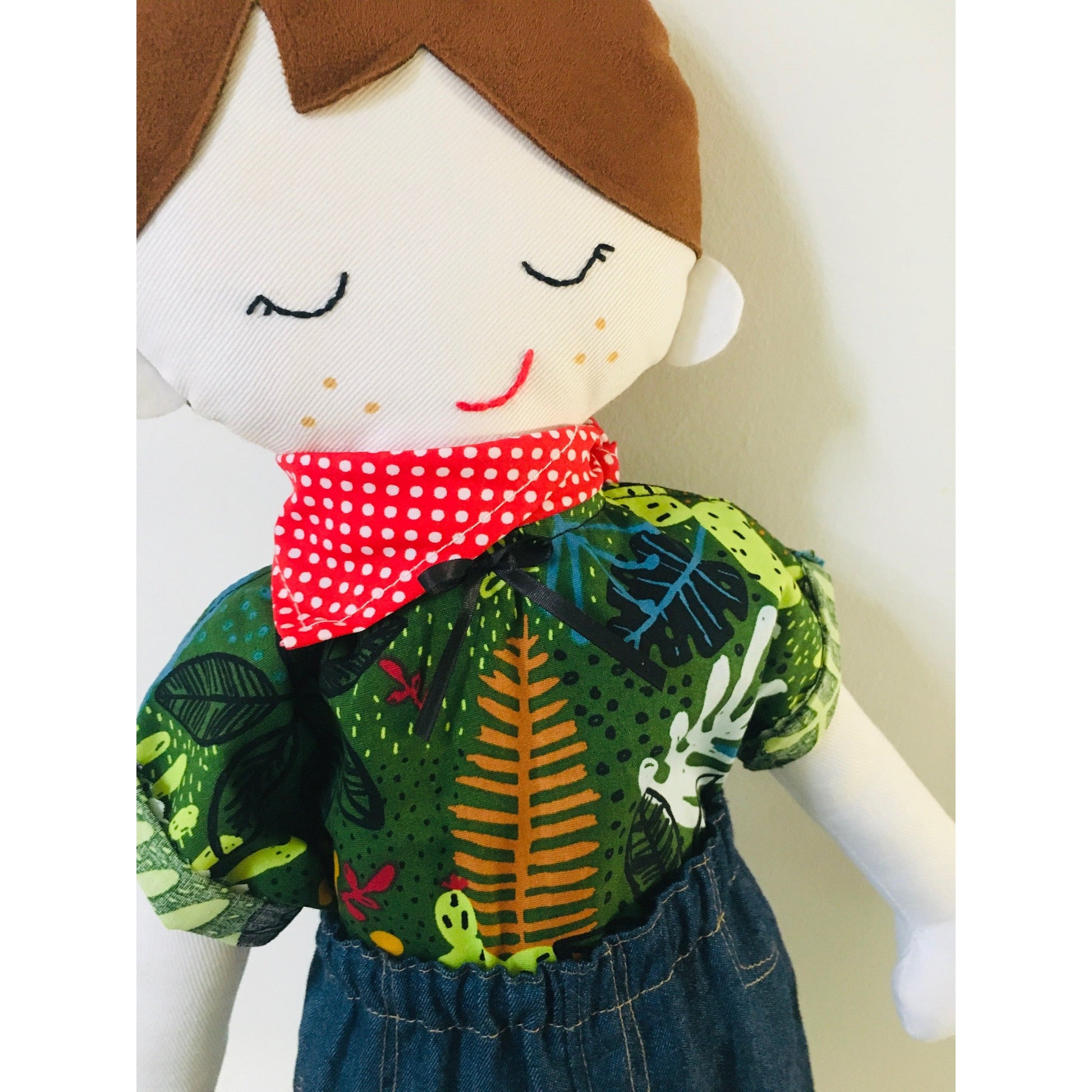 Camisa para muñecos hecha de 100% algodón con broches para cerrar por detrás y lazo de adorno en el cuello.