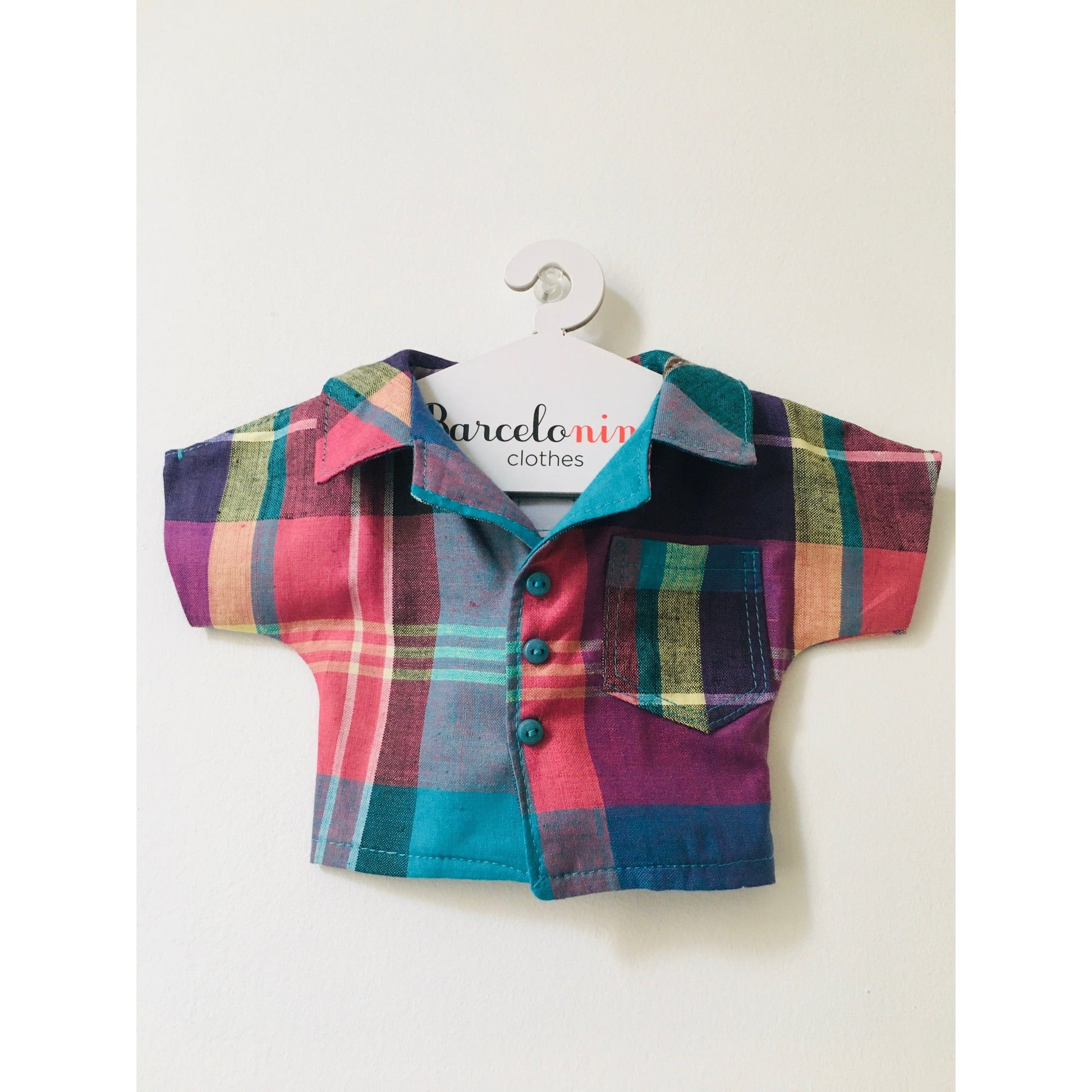 Camisa para muñecos confeccionada en 100% algodón con broches para cerrar y botones de adornos.