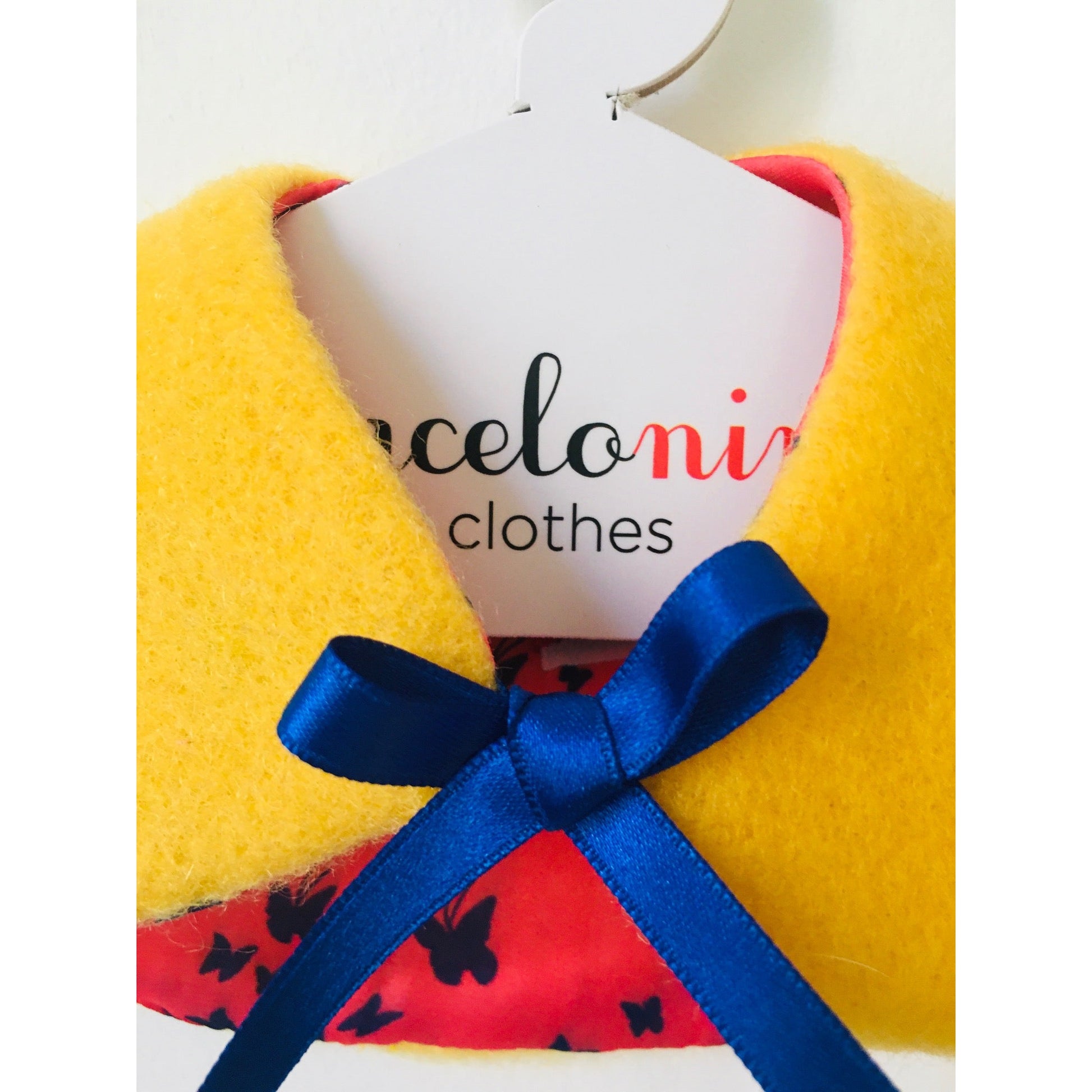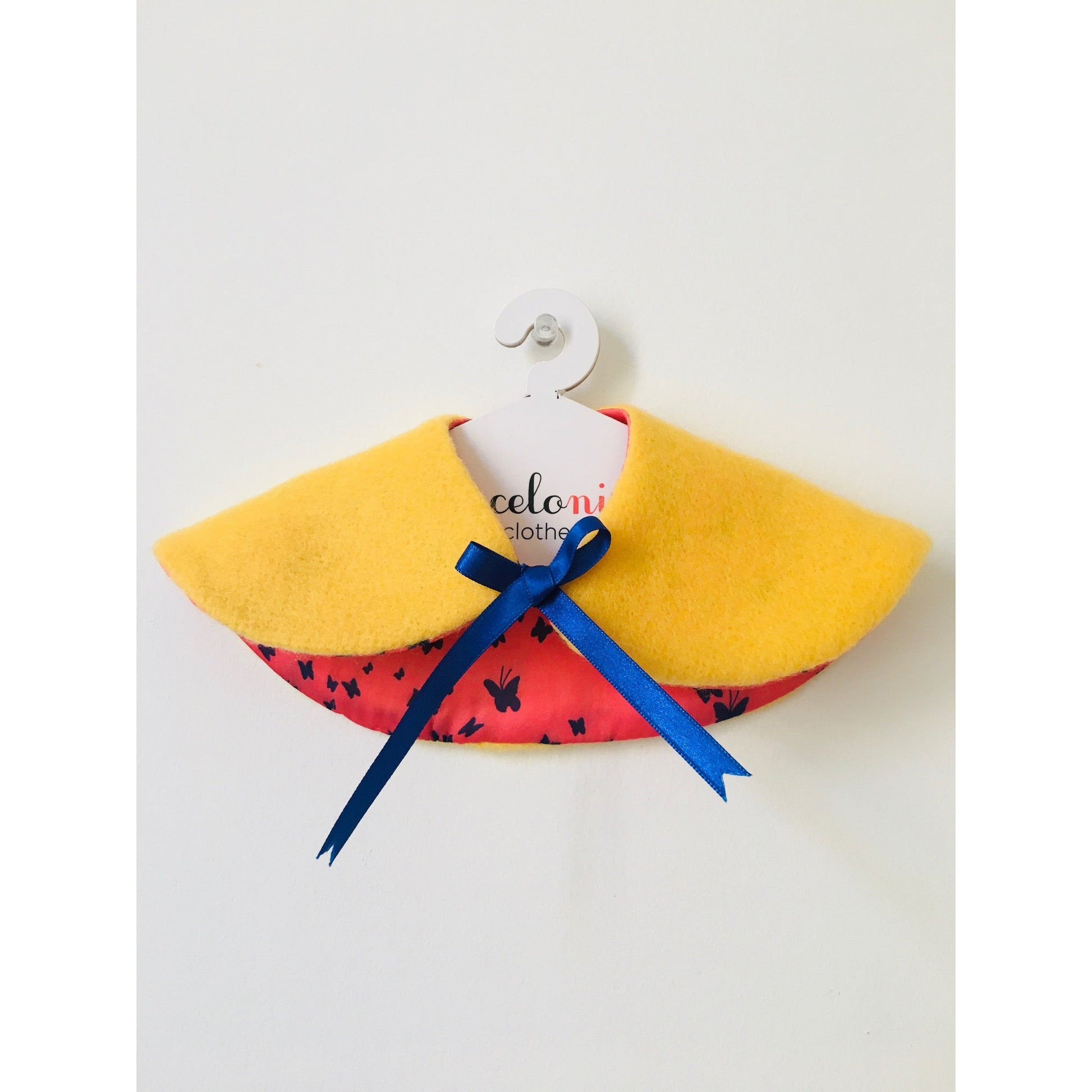 Capa para muñecas hecha de 100% lana y forro de batista. Con cinta de raso para cerrar. 100% hecha a mano.