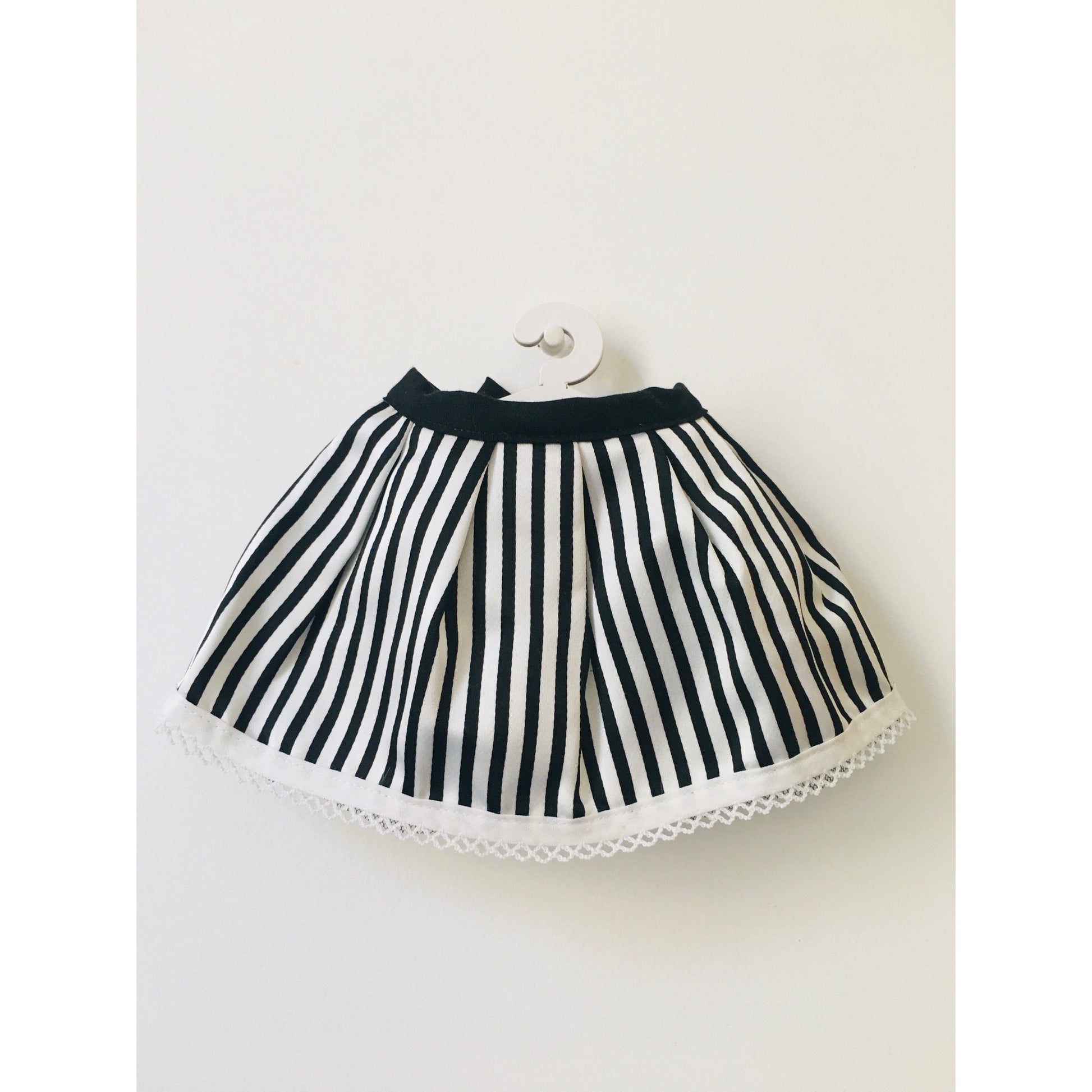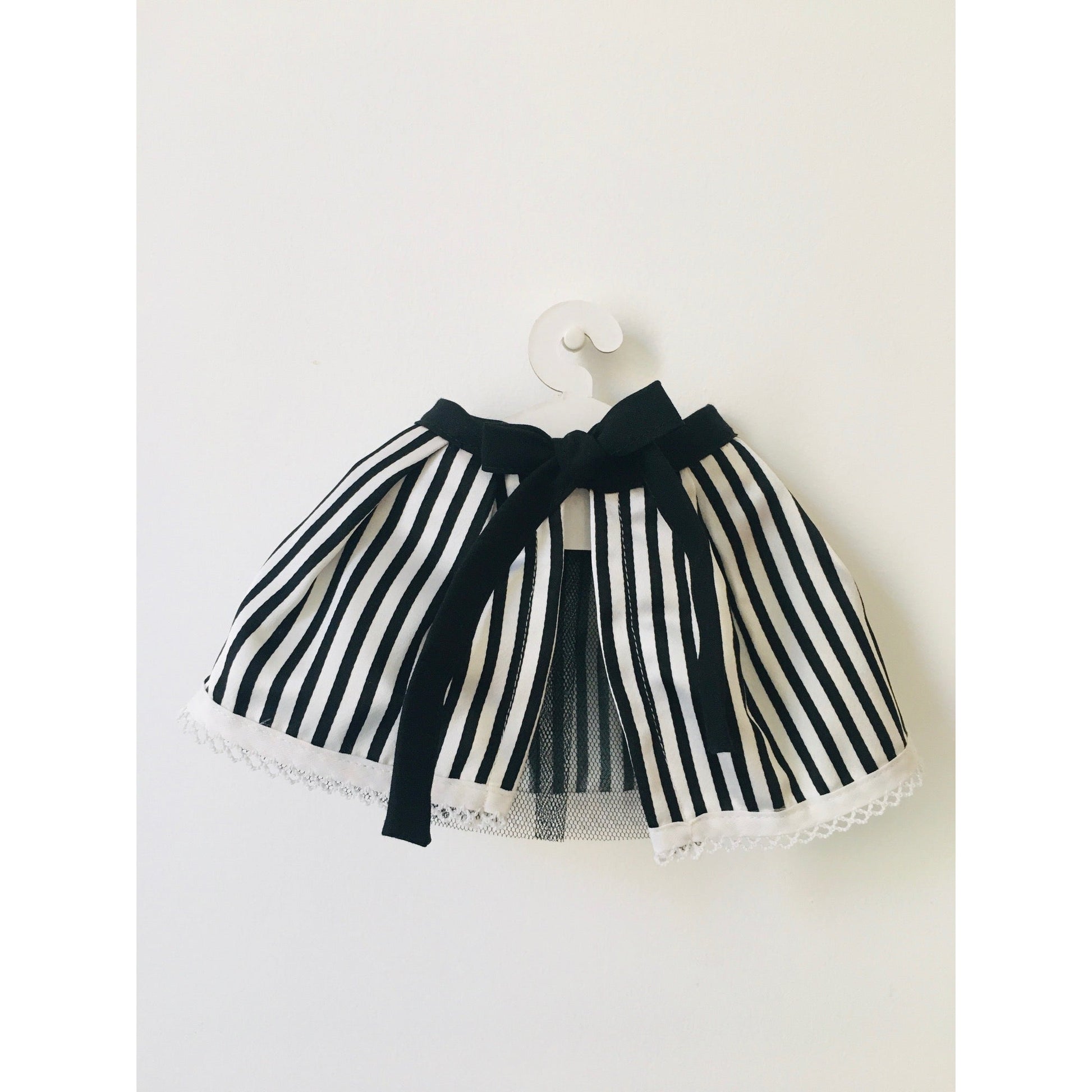 Falda para muñecas hecha de raso y tul. Ribeteada en la cintura con lazada trasera para cerrar. Con bies bordado en los bajos. Hecha 100% a mano.