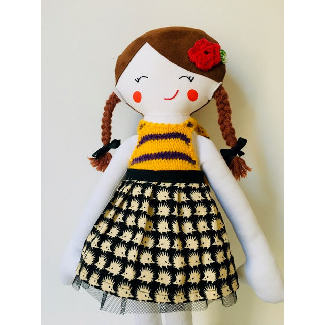 Falda para muñecas hecha de micro pana de algodón jápones y tul. Ribeteada en la cintura con lazada trasera para cerrar. Hecha 100% a mano y muy original.