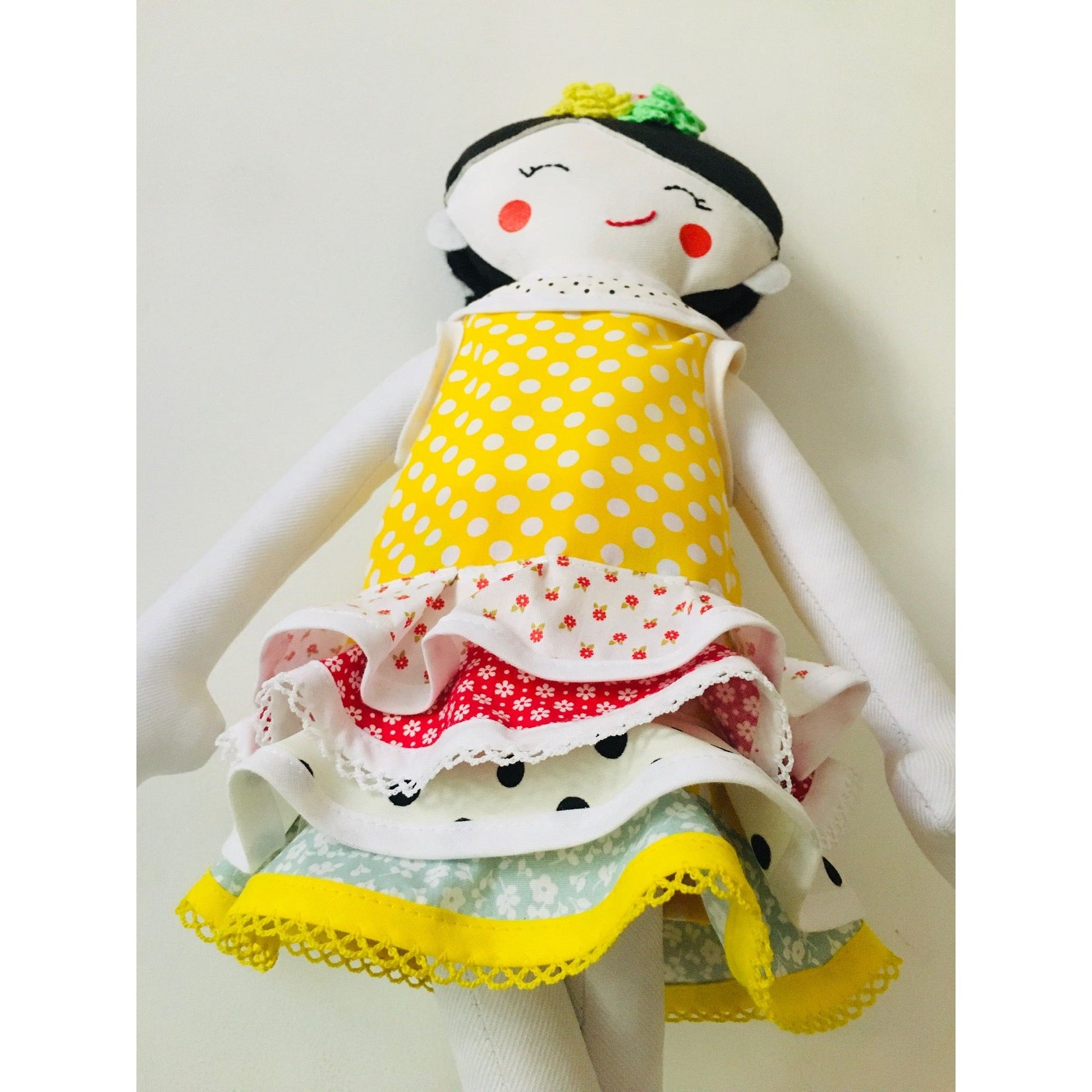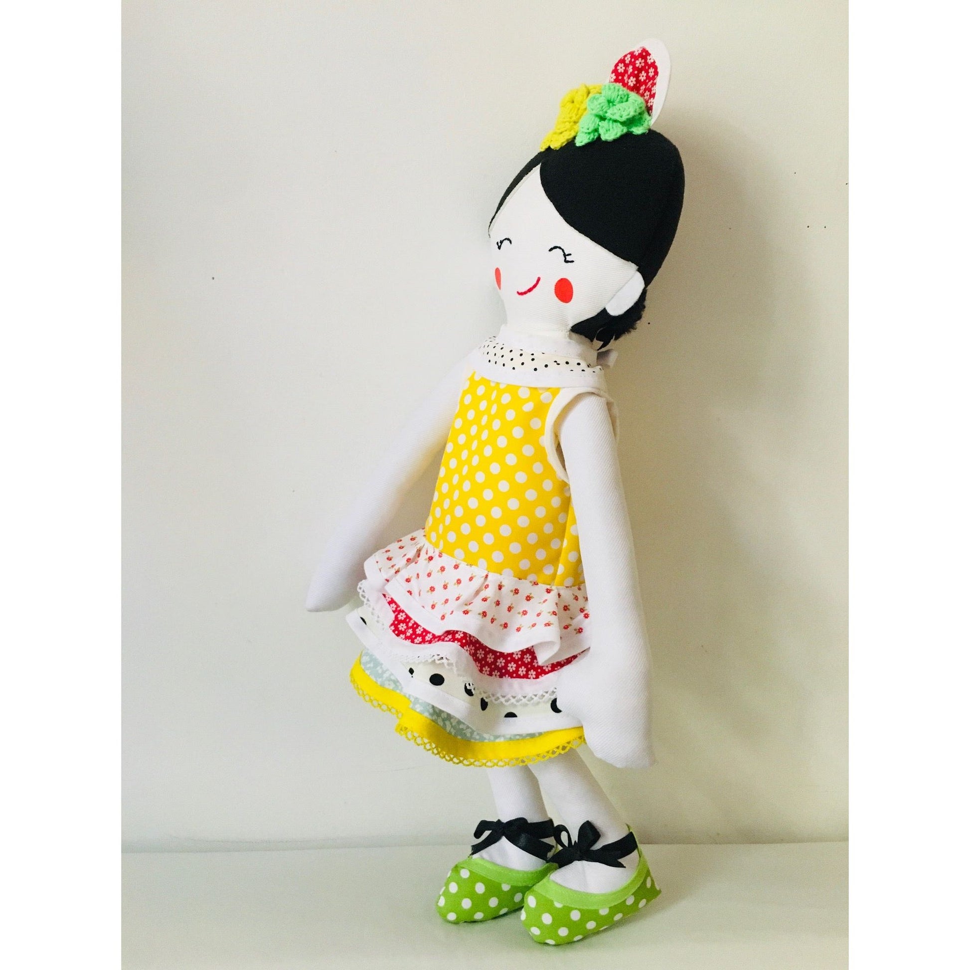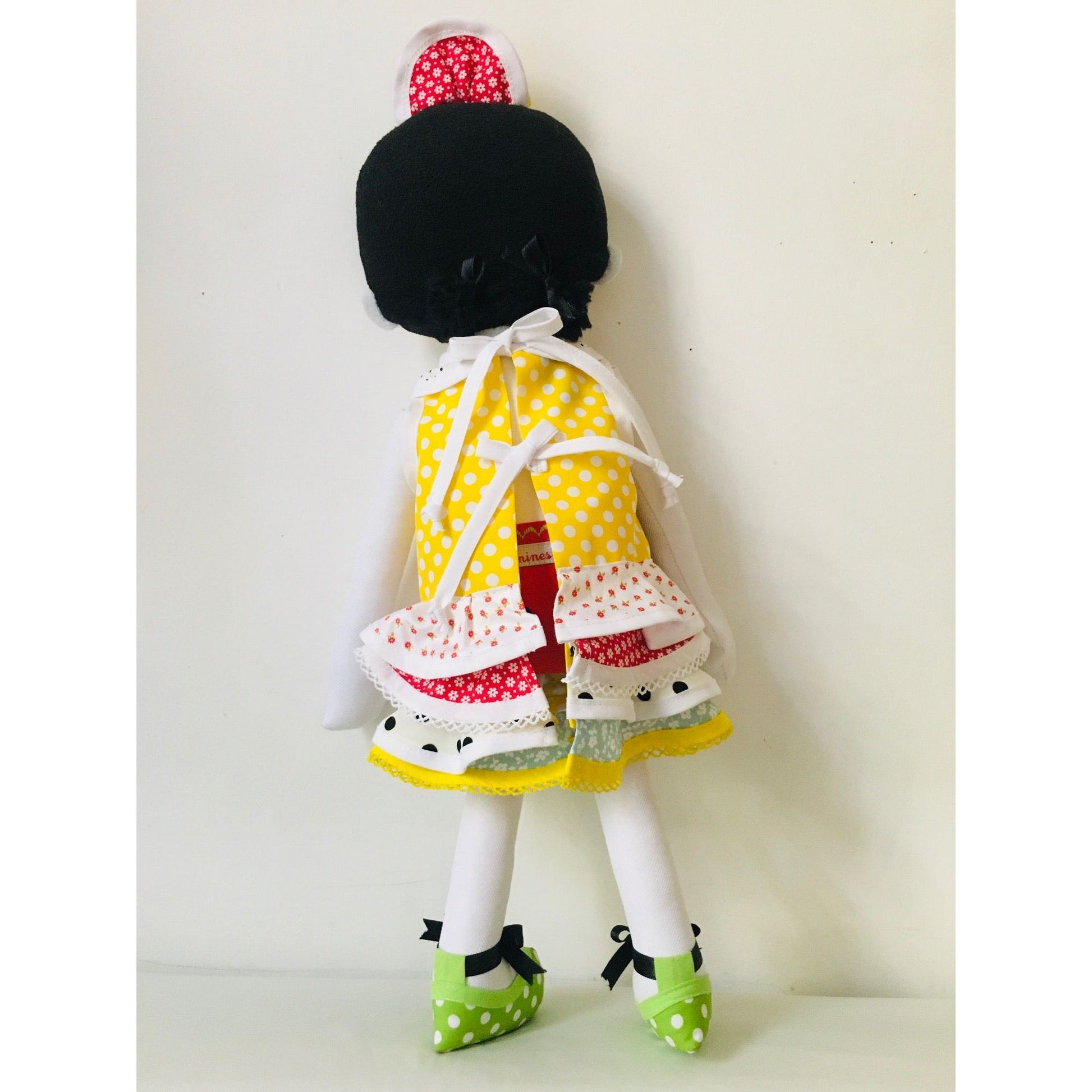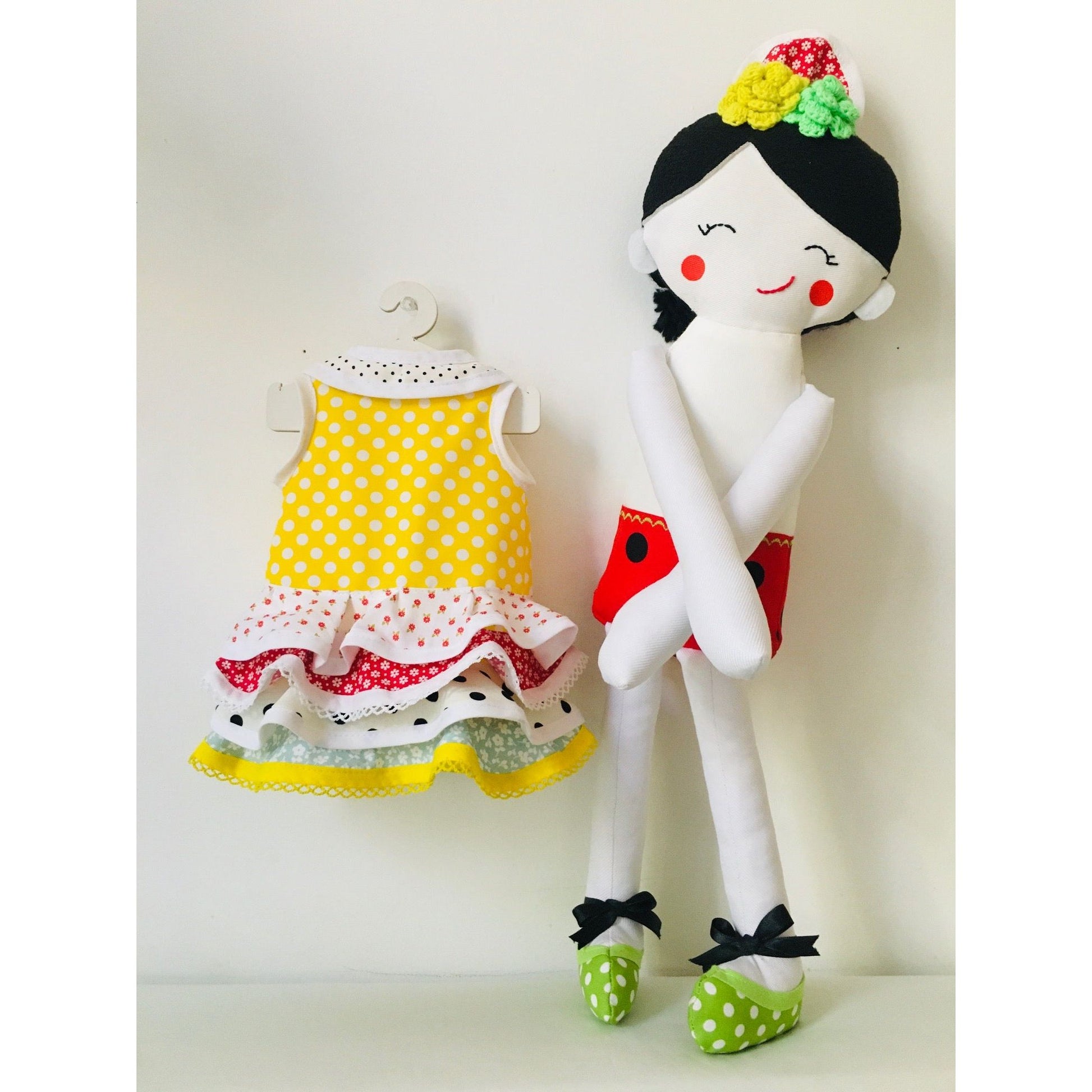 La muñeca lleva el traje típico flamenco, con flores en su cabello y sus zapatos van a juego para crear un look total.