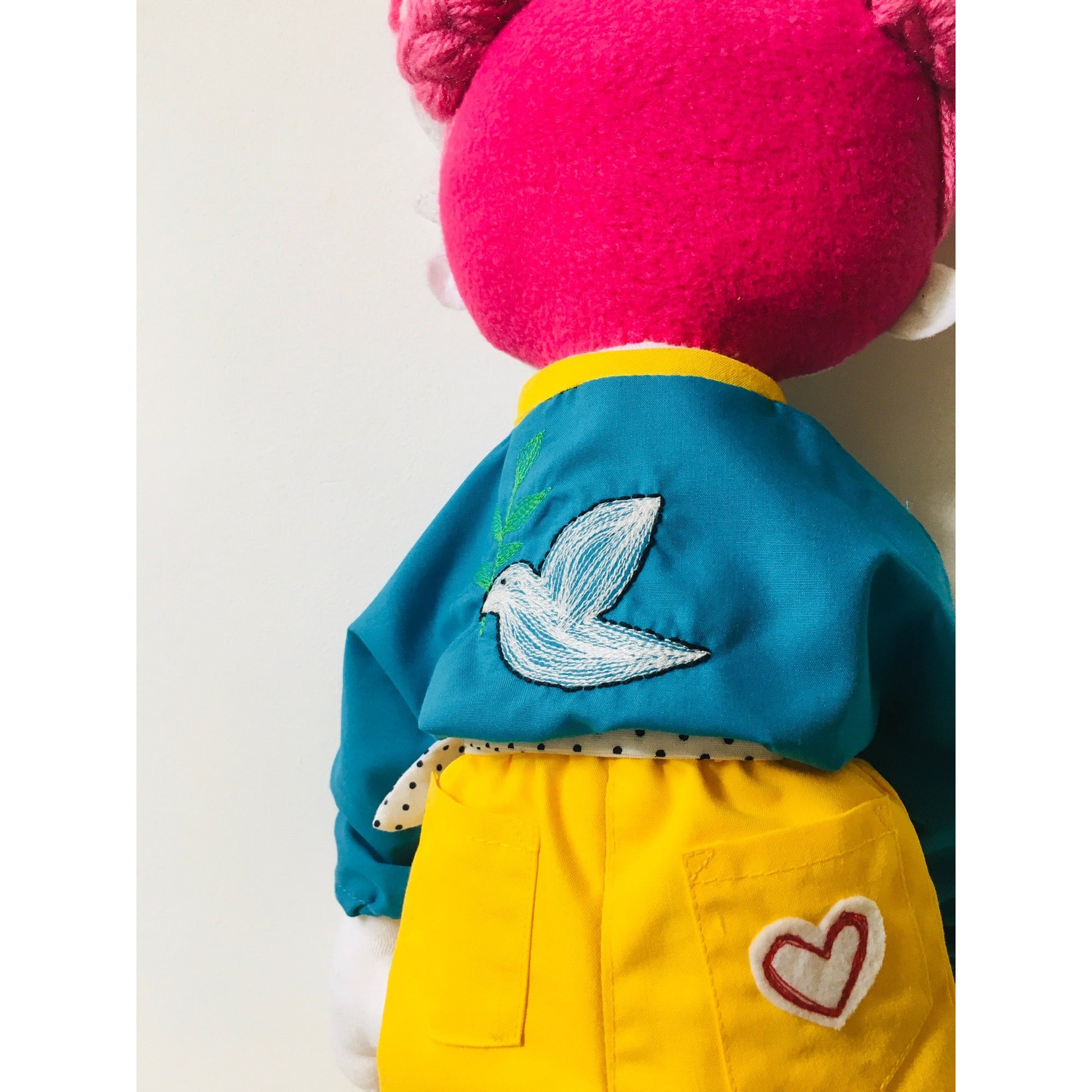 Paz fue creada para ser rifada por una causa solidaria. @dollmakers me invita a participar junto con más creadoras de muñecas de trapo, en la creación de una muñeca inspirada bajo el #dollsforpeace #stopwarinukranine. Lo recaudado por cada una de nosotras fue donado a ONG que ayudan a personas afectadas, desplazadas; por la invasión de Rusia en territorio ucraniano. En mi caso, lo recaudado fue donado a la @fundacionaladina. Dicha fundación se dedica a acoger familias con niños enfermos de cáncer provenientes de Ucrania para que sigan sus tratamientos aquí en España. Hoy en día parte de la venta de cada muñeca Paz va destinada a la fundación. Si te quieres sumar a colaborar, hazte con una muñeca Paz.