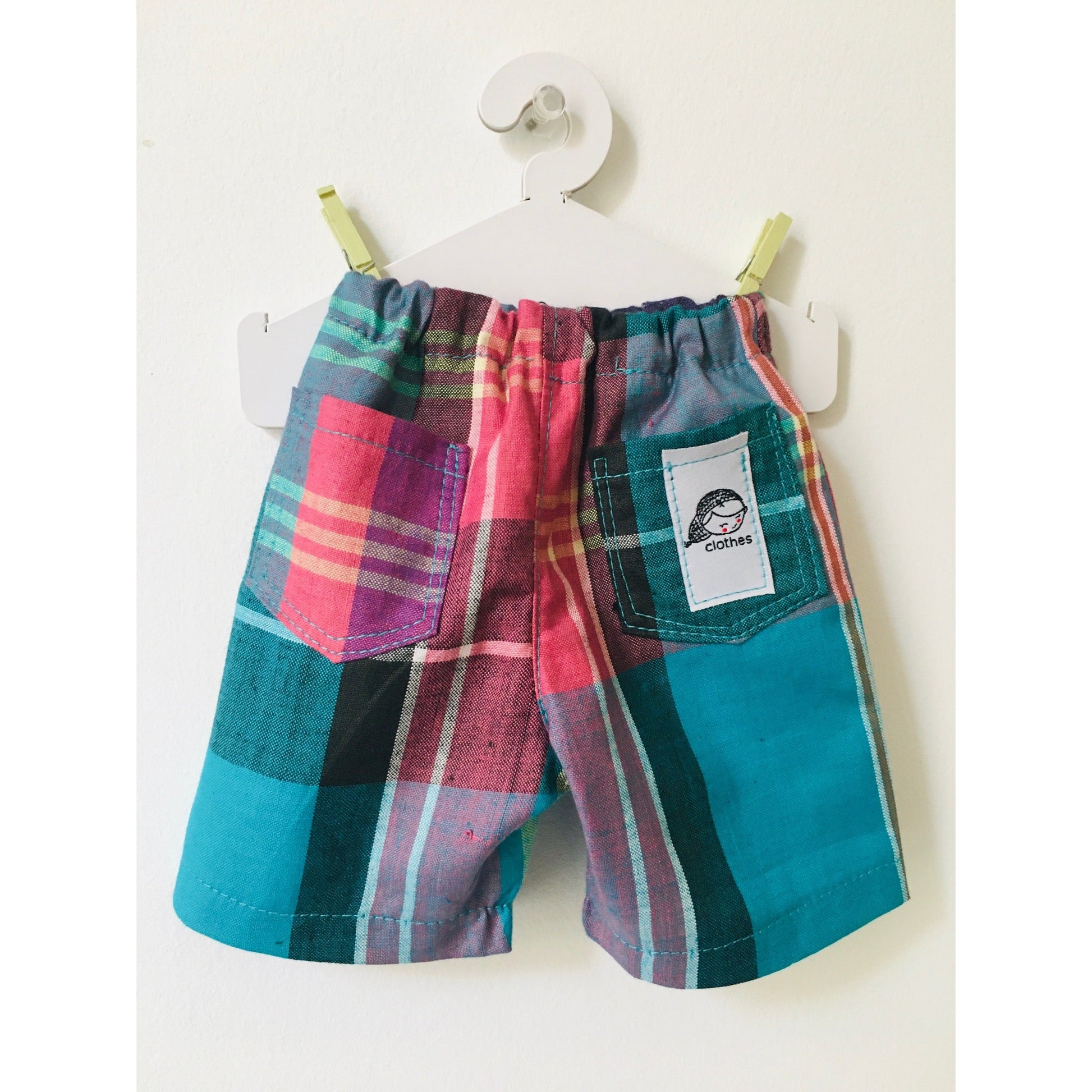 Pantalón pirata para muñecos confeccionado en 100% algodón, con elástico en la cintura y bolsillos en la parte trasera.